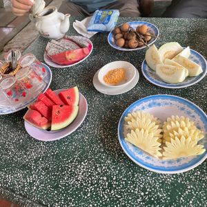 暑い中食べたフルーツはちょうどよい水分補給になりました。ドラゴンフルーツが美味しかったです。