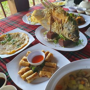象耳魚、丸い揚げ餅、えび、春巻きなど美味しく頂きました。