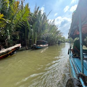 川の色が茶色なのは汚れているからではなくプランクトンが豊富だからという説明に納得。川の匂いも全くなく大河を船で渡り、更に小舟に乗り換えてメコンの懐の中に飛び込んで行きました。船着場は混雑していましたがご愛嬌の範疇でしょう。寧ろディズニーランドのジャングルクルーズを彷彿させる景色には心から楽しみました。ガイドさんもいい人で知識も豊富、妻は蛇を首に巻いてもらいご満悦でした。昼食の象鼻魚も想像以上に美味しく堪能しました。料金も手頃でコスパ良し。ツアー人数は相応でしたが、この料金とツアー内容からしたら納得の範囲内だと思います。楽しかったです。