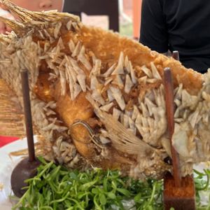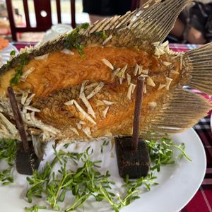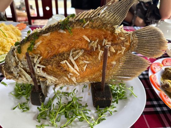名物の象耳魚は昼、夜の2回で予定されていましたが、昼は別のメニューを出してくれて夜だけ象耳魚でした。メニューがかぶらないように配慮していただきありがとうございました。象耳魚はレストランスタッフさんが取り分けて生春巻きに加工して提供してくれました。