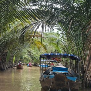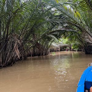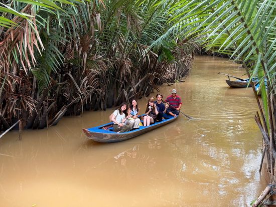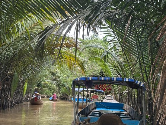 メコンデルタの細い川を手漕ぎボートで進む時間は、まるでジャングルを探検するような特別な体験でした。