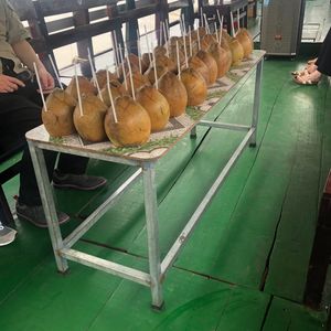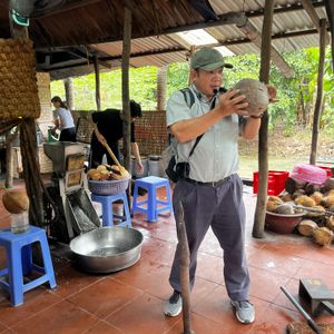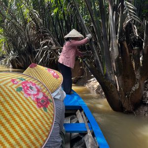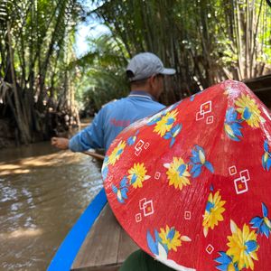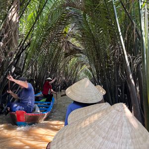 ホーチミン市内から約2時間でメコン川に着き、船に乗り島に移動。島では手漕ぎボートに乗ったり、食事に行くのもボートで、へびあり、ナマズありでまた暖かいからココナッツがそこらじゅうで栽培されていて、日本では体験できないことだらけで、面白かったです。帰り夕方になり、バイクの多さと渋滞で帰りが遅くなったのは残念です。