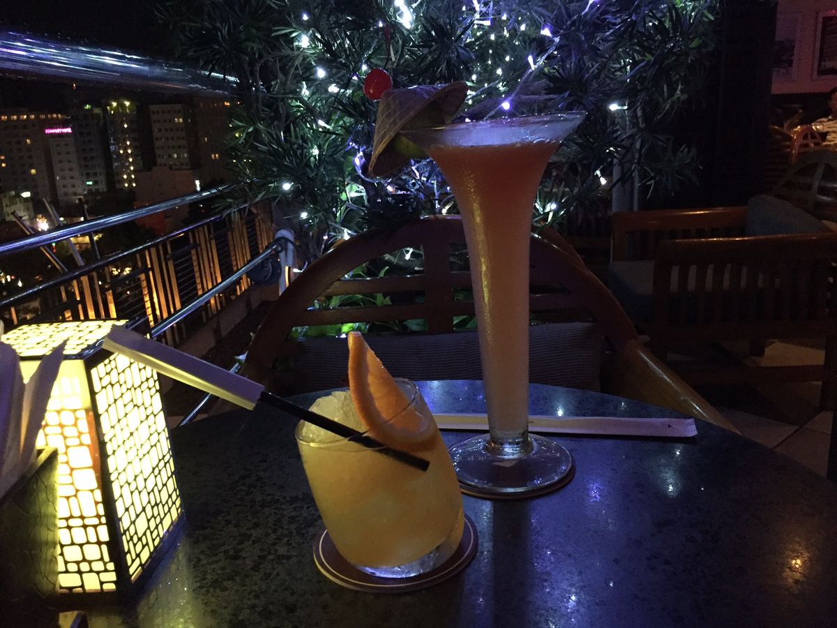私が飲んだカクテルは、ミスサイゴン150000ドン、子どもが飲んだレモンジュース45000ドン。ま〜そんなに高くはないと思います。