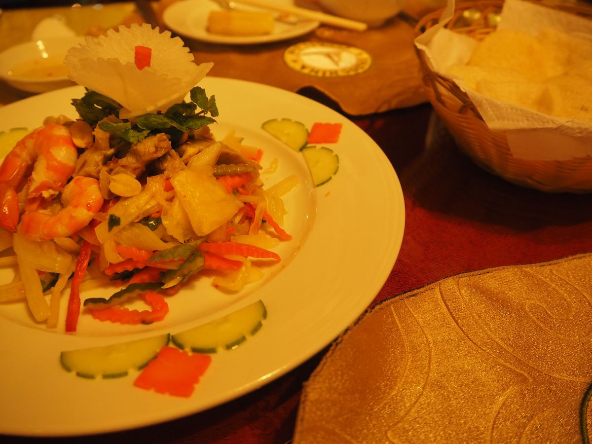 夜景を眺めてのディナーはホーチミンの風情が漂います。多くのお客がざわめく船内の雰囲気はゆっくりと食事を味わえるものではありませんが、テキパキとした接客態度は気持ちの良いものでした。また、シクロ体験という貴重な経験もできて満足しており、ホーチミンはまた訪れたい街になりました。