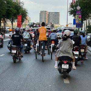 シクロは、バイクの怒涛の濁流に呑まれながら