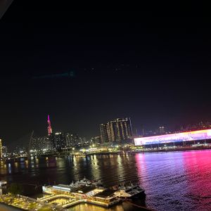 同じ場所からいくつかの船が出ていますが、この船は最もゆっくり進みます。他の船よりおそらく大きいのですが、1区の夜景エリアは停まっているのか進んでいるのかわからないくらいゆっくりです。また、最近できたランドマーク81の方まではいかず、ロッテホテル付近でUターンします(折り返しは他の船も同じあたりのようです)。