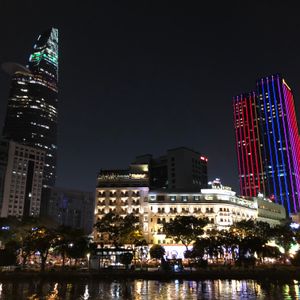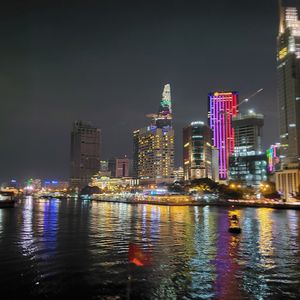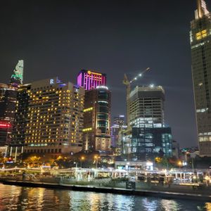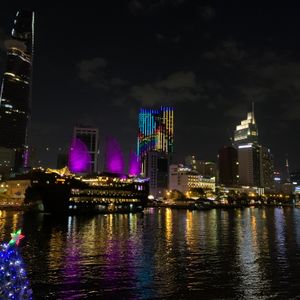サイゴン川のサイドはビルのイルミネーションが素晴らしく 色とりどりの光線や照明で写真を撮りまくりました