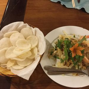昼食は、ベトナム名物のエレファントフィッシュとまあるい揚げ餅、個人だったら絶対頼まないチョイスです。味も美味しかったです。