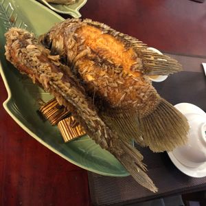 ランチの象耳魚と揚げ餅はメコンデルタの名物になっております。写真の撮り甲斐もありますね。
