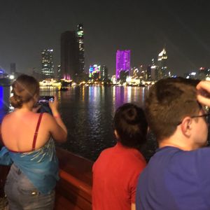 ディナークルーズは他もありましたが、セットメニューのこのコースを選択。乗船場まで、ホテルから遠くないのですが、送迎つきでお願いしました。ホテルピックアップで即、車かと思いきや、次の集合ホテルまで5分位徒歩、そこでタクシーとなりました。許容範囲ですが、ちょっと意外でした。船着場に到着し、乗船。テーブルに案内されディナー開始です。ベトナム音楽の演奏、踊り、歌などを楽しみながら食事が進みます。メニューはベトナム料理で美味しかったです。食事後は、デッキでサイゴンの夜景と夜風を楽しんだ後、下船。帰りはホテルまで車で送っていただけました。