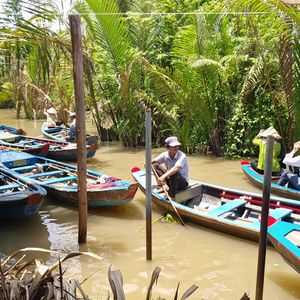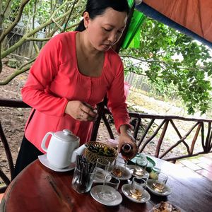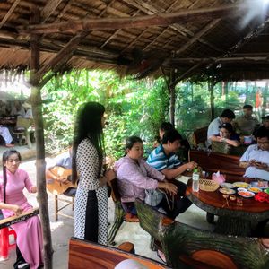 メコン川では船だけでは無く、フルーツのサービスやヘビとの写真撮影やハチミツお茶の試食なども付いていて充実でした。トイレ休憩も色々な場所であり、高齢の母も心配なく参加できました。メコン川から1度ホテルに戻り