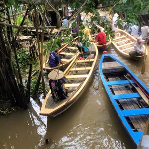 船着き場からは少し大きな船で皆んなで川の中洲へ。そこで暮らしている方々の生活ぶりを拝見しながら、たくさん生えている植物についての説明も受けながら、のんびりと散歩。