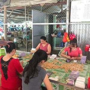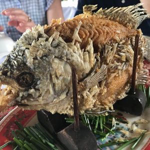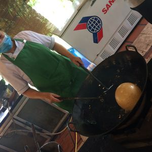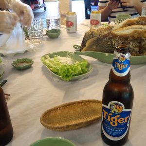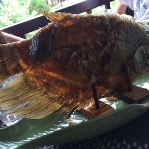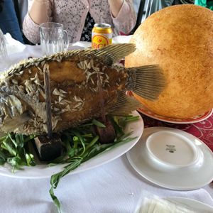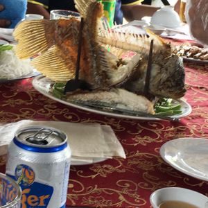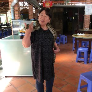 今回の旅行で一番楽しみにしていました。指定ホテルでピックアップして頂き目的地のミトーへ。メコン川は雨季は今回の茶色、乾季は緑色になるとのこと。ハチミツ農園で休憩し、ニシキヘビを首にかけたり、ココナッツキャンディの工場見学、メコンデルタ川クルーズは狭いながらも楽しかったです。その後はランチタイムと気になっていたエレファントイヤーフィッシュの登場。生春巻きにしてお店の人が巻いてくれました。味付けは臭みもなくあっさりしています。他にもあげ春巻き、そうめん等でました。
