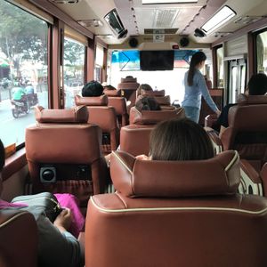 バスは小型でしたがシートが3列(2+1列)、座席は広くビジネスクラスのシートのようで快適です。そして車内では無料のWi-Fiが使えるので、スマホで途中の情報収集、SNSチェックもOKです。ホーチミン市内からミトーまでは、混んでいる時は2時間以上かかることもあるようですが、1時間半ちょっとでつきました。