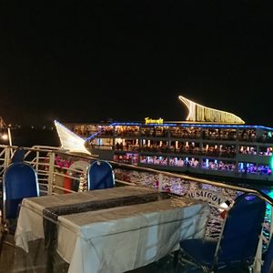 ディナークルーズの食事は、同じツアーの方と4名1組で食事が準備されていました。ステージで音楽や踊りが披露されていました。船からの景色はあまり期待しないほうがいいです。