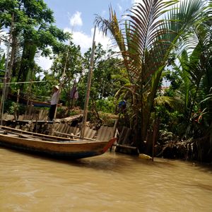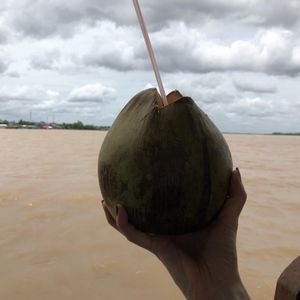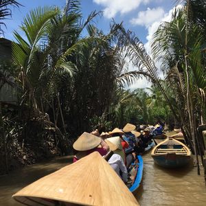 メコン川手漕ぎボートは思った以上に日射しが強いので帽子や上着など直射日光を避けられるものがあればいいと思います。
