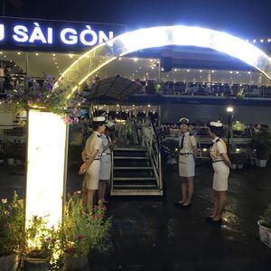 終了後は、ディナークルーズの船着場へ。船は20:00出航のサイゴン号でした。3階の予約席に着席して一服すると、出港前から食事が出てきました。