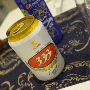 サイゴン川ディナークルーズは食事がコースで決まっており、座ったらどんどんお皿が出てきます。ドリンクは別会計ですが、333を2本飲んでも62,000ドン(約300円)です。