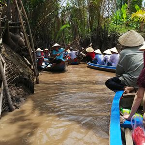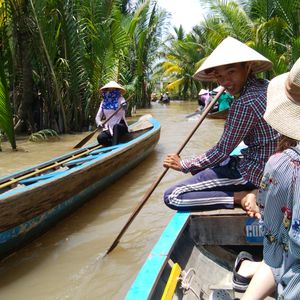 ガイドさんがホテルのロビーに時間通りに迎えに来て、ホーチミンから2時間弱でミトーに到着。ガイドさんの案内で蜂蜜農家やココナッツキャンディー工場を見学し、果樹園で郷土音楽を聴きながらトロピカルフルーツを食べました。その後は手漕ぎボートでのジャングルクルーズで混んでいましたが楽しかったです。昼食は名物の「象耳魚(エレファントフィッシュ)」と郷土料理を食べ、ホーチミンに戻りホテルで休憩です。