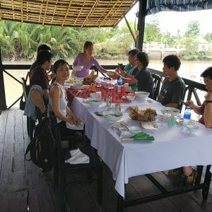 老夫婦初めてのベトナム旅行で、ゆっくりとノンビリ観光したくこのツア-のお世話になりました。感じの良いガイドさんの定刻でのホテルピックアップ、そしてなんと二人だけの貸し切りツア-の一日となりました。メコンデルタクル-ズではメインの手漕ぎボ-ト・ハチミツ&ココナツミルク飴工場等の見学試食・お茶休憩での歓迎の歌(我慢して聞いてあげて?ガイド曰く(笑))などランチと共に楽しめました。午後3時ごろホテルでの休憩あと次の水上人形劇からディナ-クル-ズは期待以上の内容でした。特に大型船でのサイゴン川ディナ-は、涼しい夜風と夜景を楽しみながらの鍋料理と地ビ-ルを約一時間満喫しました。ガイドさんのサポ-トで、心配してた暑さと終日に亘る長時間ツア-を無事に乗り切れました感謝です。