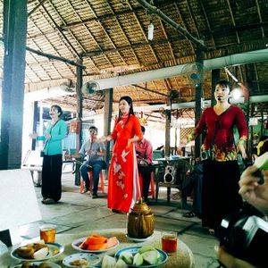 その後、綺麗なフルーツの試食&お茶を飲みながらアオザイ姿のお姉さん達の歌を聞きました。