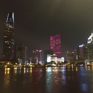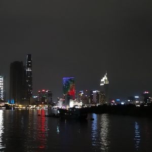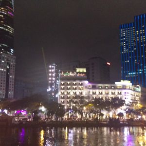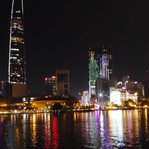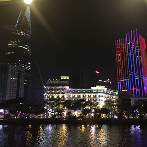 サイゴン川のナイトクルーズでは、ビックリするほど、豪華な船に乗ってたくさんの美味しいベトナム料理を食べることができてセレブ気分でした!夜景がキレイで、特に水面に映る光がとても幻想的で雰囲気に酔いしれてしまいました。