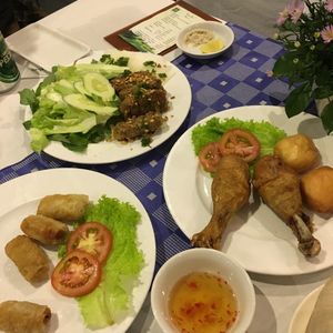 昼食は雰囲気の良いオープンなレストラン。お店の人が包んでくれるお魚の春巻きや揚げもち、揚げ春巻きなど、食事もおいしかったですし、女性には量もちょうどよくておなか一杯になりました!ドリンクだけ別料金ですが、パイナップルジュースがすごくおいしいのでお勧めです!