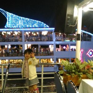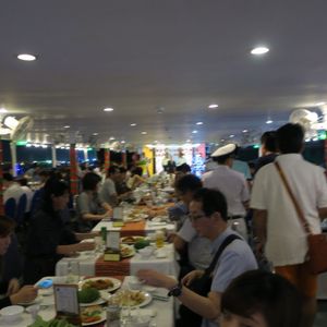 3階席のオープンな船内でベトナム料理を楽しめます。歌や踊りなどもあり、一時クラブみたいな雰囲気。お料理はランチの方がおいしいですが、夜景や雰囲気で非日常を味わえるのがとてもよかったです。