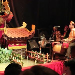 まず、最初は人形劇は期待してませんでしたが、伝統芸能ということもあり一度鑑賞しようと思って申し込んだところ、意外にコミカルな動きに「クスツ」とした笑いあり♪いくつかの演目に従って5分程度のショートショーが繰り広げられます。言葉はわかりませんが動きと事前のパンフレットでおおよそわかります。この演目は時々変わるので時期をずれせば違うショーが楽しめるそうです。演奏がすべて生バンドなのがレベルの高さもうかがわれます。