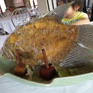 象耳魚や風船みたいな揚餅など珍しい料理が並ぶ。味もおいしい。
