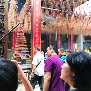 天后聖母寺では地元の人に交って巨大な渦巻き線香をお供え。こんな体験もガイド付ツアーならではだと思う。