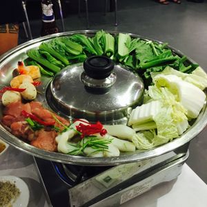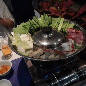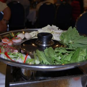 ãã®åŸããµã€ãŽã³å·ã®ãã£ããŒã¯ã«ãŒãºãžããã¡ãã¯äžå€®ã®ã¹ããŒãžã«è¿ãåžã§ãäºäººåããåããã§åº§ããŸãããè¹å¡æå§¿ã®ã¹ã¿ããããµãŒãããŠãããŠãæ°åãçãäžãããŸãããæµ·é®®ã¹ãŒããæãæ¥å·»ããéïŒç· ãã®éººãã€ããŠããŸããïŒããã¶ãŒããªã©çš®é¡ãå€ããéãååã§ããããã£ãã§ãã
