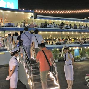 18æéããæ»åšããŠããããã«ã«ã¬ã€ããããè¿ãã«æ¥ãŠãã ãããŸãããç§»åã«äœ¿ãè»ããšãŠãæž æœã§ä¹ãå¿å°ãè¯ãã£ãã§ããæ°Žäžäººåœ¢åã¯åçã§èŠããšãã¡ãã£ãšæãã®äººåœ¢ãã¡ã§ãã(ç¬ïŒå®éåããŠããã®ãã¿ããšãèšèã¯åãããªããŠãåãããšãŠã坿ããŠãé¢çœããŠãæ¬åœã«ãã£ãšããéã®1æéã§ããããŸããããã ã«æ¥ãæ©äŒãããã°ããäžåºŠèŠããã§ãããã®åŸãåã³ãã¹ã«ä¹ããã£ããŒã¯ã«ãŒãºãžãšåãããŸããããšãŠã倧ããªè¹ã§ãçåžãããšããªã³ã¯ããªãŒããŒããããã«æçãéã°ããŠããŸãããã¡ãã¥ãŒã¯ãéãå«ããããã æçã§ãããæ¬æ¥ãªã麺ããç¿ã«å ¥ããŠãã®äžããã¹ãŒããããããšããé£ã¹æ¹ãããã®ã§ããæ¥æ¬äººã®å£ã«ã¯ã©ããå ããç§ãã¡ã¯éººããéã®äžã«å ¥ããŠé£ã¹ãŠããŸãããã¹ãŒãããšãŠããããããŠãããšããŸããã座åžã¯è¹ã®åŸæ¹ã ã£ãã®ã§ãåæ¹ã§è¡ãããŠããã·ã§ãŒã¯ã»ãšãã©èŠããŸããã§ããããéäžã倧éšã®åœ±é¿ã§éšããã®ã·ãŒãã匵ãããã®ã§ã倿¯ã楜ããããšã¯ã§ããŸããã§ããã(éšå£ã®å€§éšã貎éãªäœéšïŒïŒåããã¢ãŒåå è ãããšã®äŒè©±ã楜ãããæ å ±äº€æãªã©ãããææçŸ©ãªæéãéãããŸãããã¯ã«ãŒãºãçµãããåã³ãã¹ãžæ»ãã®ã§ããããŸã ãŸã å€ã¯å€§éšïœ¥ïœ¥ïœ¥ãã¬ã€ããããæ©è»¢ãããããè¹ã®åãåããŠããŠãããã®ã§ãéšã«æ¿¡ããããšãªããã¹ã«æ»ãããšãã§ããŸãããã»ããšãã«æåŸãŸã§å®å šã«éè¿ããŠãã ãããŸããå€ã®å€åºã¯å人ã§ã¯ãªããªãé£ããã®ã§ããã¢ãŒã«åå ããŠããã£ãã§ãã