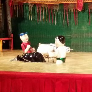 言葉はわかりませんがコミカルな内容で笑いどころもあり楽しく鑑賞しました。人形劇に合わせて生演奏される楽器演奏と歌も人形劇を盛り上げてくれます。写真撮影も可能です。