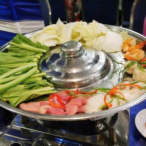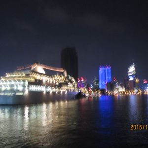 人形劇の後、また2組ほどピックアップしてディナークルーズに向かいました。クルーズ船にはもうすでに多くの人が乗っていました。船内は賑やかで歌や踊りのショーが繰り広げられていました。夜景自体は一部きれいな所はあるものの、全体的には少し暗かったようでたいした景色ではありませんでした。料理はコースで鍋などもあって良かったです。