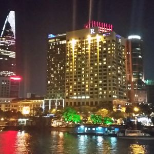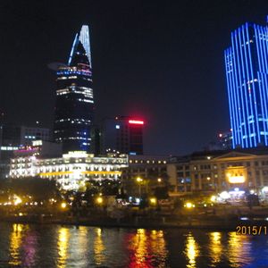 サイゴン川ディナークルーズに乗り、ほかにいろいろな造形のクルーズが有って、子供達は料理より魚の造形のクルーズに興味あり、川沿いに有名なホテルMAJESTIC,ホーチミン博物館などがクルーズから鑑賞できて、陸上から見た感じと違って、幻想的でした