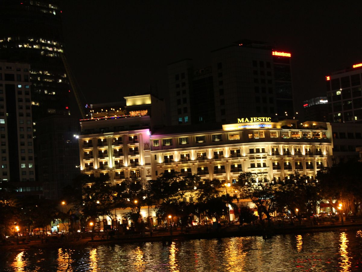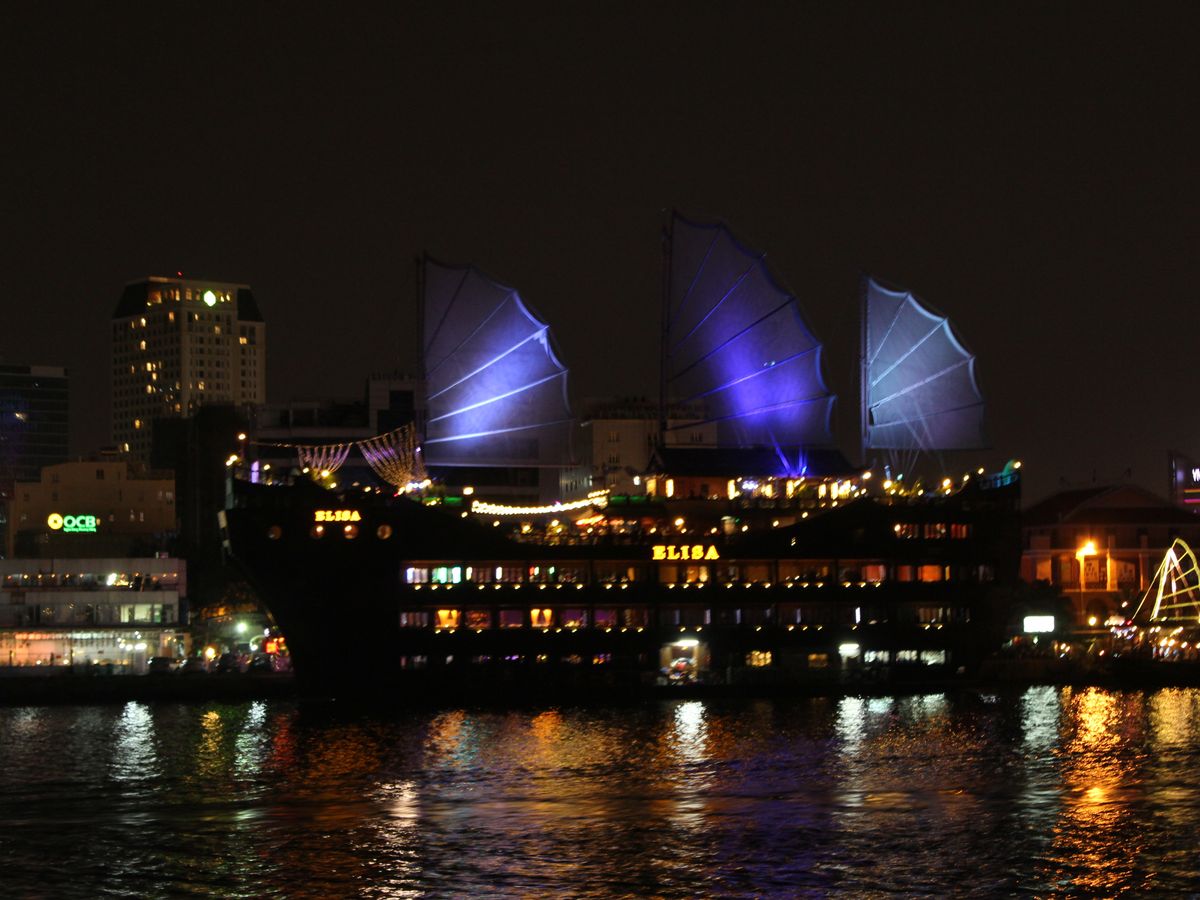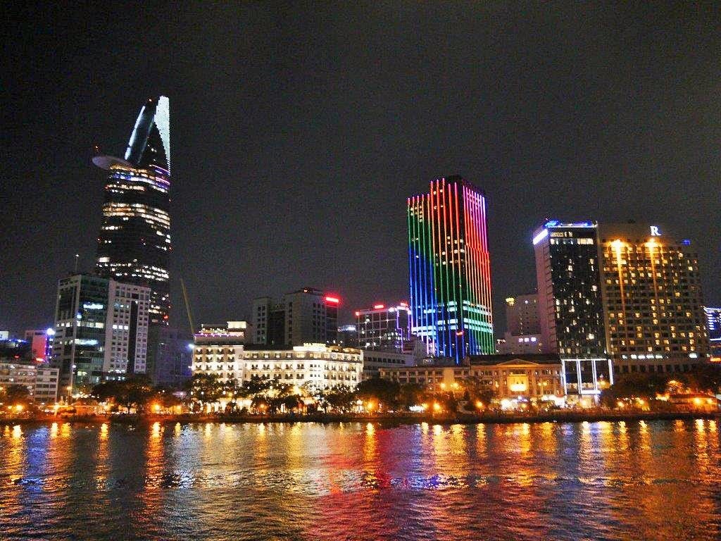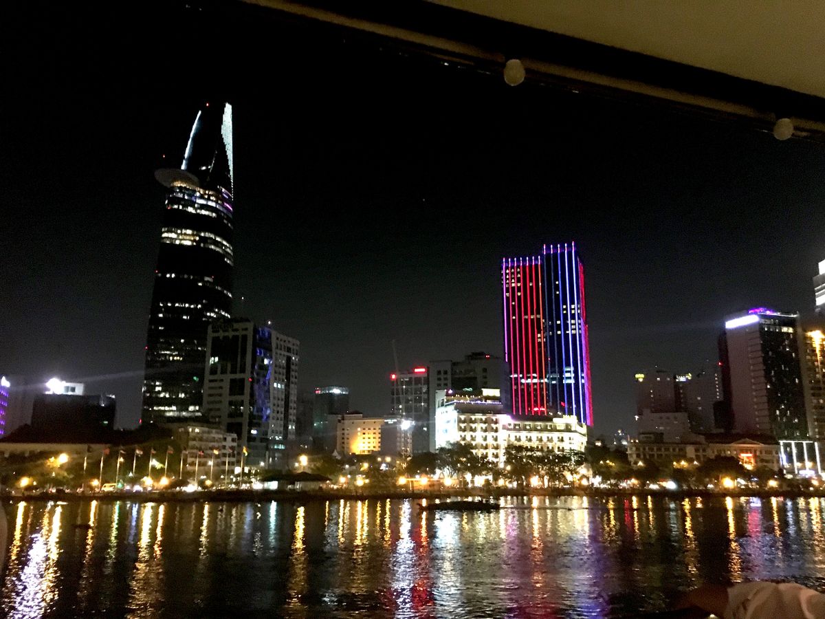 船の外を見ると、ホーチミンの夜景が見られて、とてもロマンチックな気分になれました。