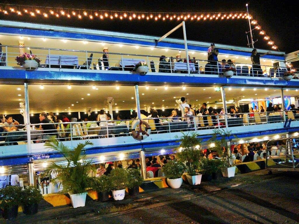 船着き場に到着すると、ダイニングが可能なクルージング船が泊まっていました。