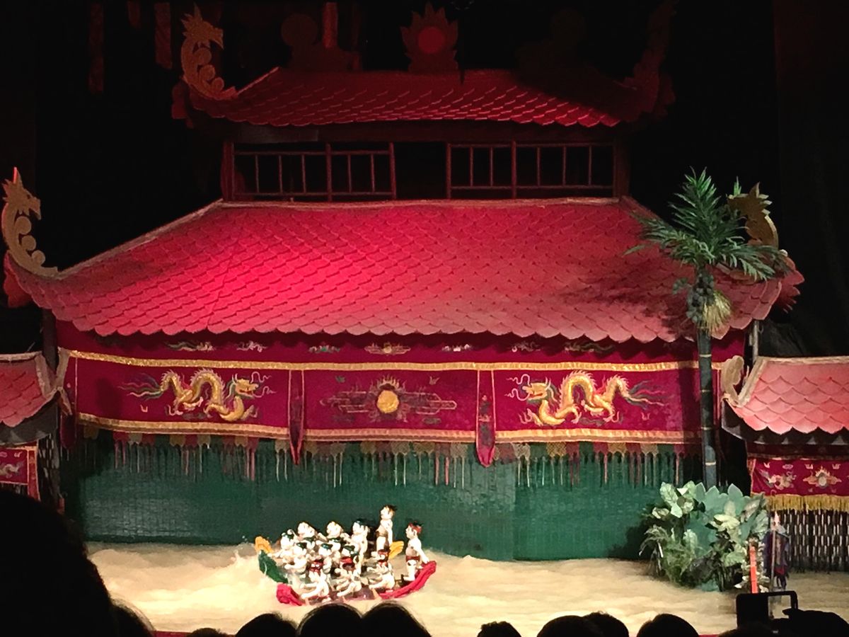 水上人形劇は、言葉は全然わからなかったけど、まったく気にならず、とても楽しめました。音楽や歌、セリフの言い回しが面白く、わからないなりに笑ったりもできました。客席は、後の方に行くにつれて高くなっているので、見やすいはずなのですが、西洋人の方が多く、前に大きな人が座ると少し観にくかったです。また、すぐ外で音楽が流れているのですが、低音のドンドンという音が鑑賞中もずっと聞こえてきたのが、とても残念でした。それ以外は問題なく、楽しかったです。