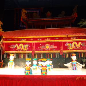 以前ハノイで水上人形劇を見逃してしまったので今回は絶対に観ようと思っていました。ツアーで申し込んだほうがいい席がとれるとの情報があったのでこちらでお願いしました。おかげで最前列で楽しく鑑賞できました。人形の動きが絶妙で言葉はわからなくても十分楽しめます。人形劇だからとあなどれません。ただかなり水しぶきは飛んできます。食事も狭い路地にはいったレストランでアンティーク調の家具がおかれ雰囲気のあるお店でした。お料理もおいしかったです。ガイドの方も親切で短時間でしたがいい思い出になりました。