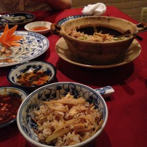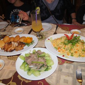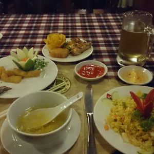 スープ、春巻、鶏肉、お鍋など。