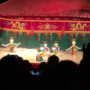 水上人形劇、実はそれほど期待していなかったのですが、思っていた以上に楽しく、あっという間でした。時間も45分くらいで、ちょうど良いです。席も一番前の席で、水が飛んで来たりと楽しめます。後ろの方の席だったら印象が違ってくるかもしれません。