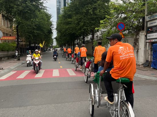 交通量の多い時間帯、バイクに囲まれながらのシクロ乗車、スリリングで楽しかった!