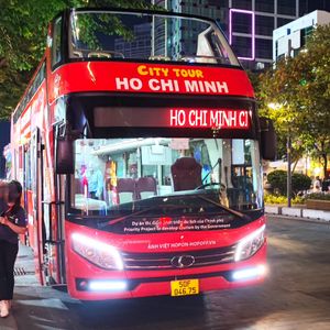 ホーチミンに到着して、タクシーでホテルへ、チェックインしてスーツケースを置いて、このツァーに参加しました。到着早々、何も分からないので、このツァーに参加して要所要所を巡って貰って良かったです。それに添乗員さんが日本語のアナウンスの流れるイヤホンのある席、お天気にも恵まれ二階建てバスの2階がお勧めと案内してくれました。ネオンがすごくて綺麗な市内でした。バスの2階からは市街が良く見えて、街歩きで見る目線と違ってバスの2階からみると高いところから良く見えて、本当に良かったです。交通量が多くてバイクが多いのには驚かされましたが、二階建てバスから見てる分には車のライトも綺麗で、悠々と見学出来ました。またホアトゥクでのディナーも美味しく、楽しかったです。到着したばかりで何も分からないので、このツァーに参加して添乗員さんにホーチミンの現状を伺って、後日の予定の助けになりました。添乗員さんにも感謝してます。本当に有難う御座いました。
