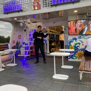 日替わりで様々なミュージシャンが演奏してくれる様で、この日はサックス奏者の演奏を聴きながら夜のクルーズを楽しみました。
