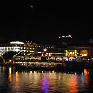 サイゴン川ディナークルーズに、83歳の父・79歳の母と一緒に参加しました。シクロは、運転手さんがとても親切で、両親にもカタコトの日本語で案内してくれました。船は個室で、余計な冷房がなく川風が爽やかでした。私たちは進行方向に向かって右側の席で、夜景を思う存分楽しめました。反対側は暗くて、座る位置によって当たり外れが出ると思います。船はほとんど揺れず、料理も美味しく(フォーは出ませんでしたが)、子供から老人まであらゆる人にお勧めできます。