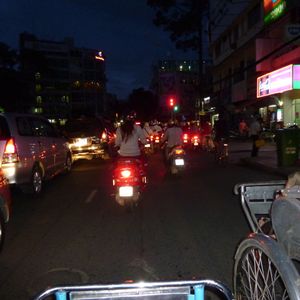 大晦日の夜ということもあり、通常より大量のバイクが走る中のシクロ体験でした。バイクと同じ目線で町を見ることができ、今までに無い経験ができました!