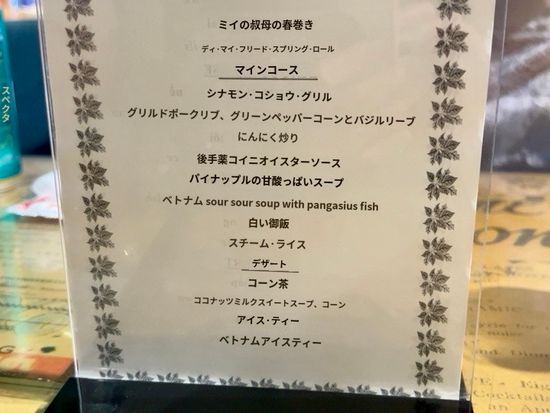 閉じるマッサージは1時間と入念にしてもらえます。ココナッツオイル式とタイ式が選べますがタイ式は痛いとのことなのでオイル式にしました。ディナーのメニューには、スターターの後、メインコースとありますが、一度に沢山配膳されますwww
