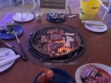 夕方の海を見ながらバーベキューができて最高でした。サラダ、ご飯、味噌汁、飲み物が飲み放題で食べ応え抜群のお肉と海鮮類がたくさん乗ったお皿がボリューム満点でした。