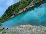 天然プールは入り口を降りて小さいプール、ここだけ?っと思いきや隠し通路の様な隙間を抜けた先は広くなっててホントにプールでした!水深は深いとこで2.5mくらい、洞窟内の半分は陸で岸側は浅いです。泳ぎが苦手な人でもライフジャケットを無料で借りれるので楽しめます。
